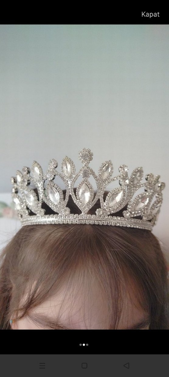 Beyaz simlerle süslenmiş, klasik ve geleneksel tarzda tasarlanmış, gösterişli düğün görünümleri için uygun taç.