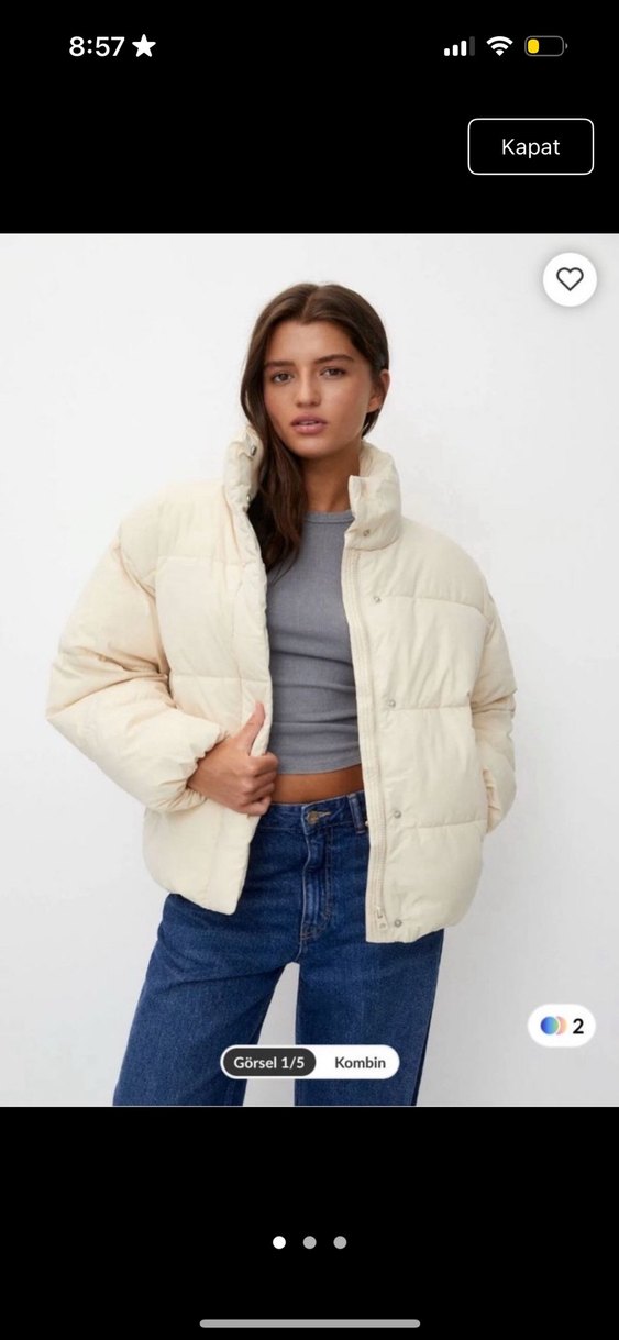 Beyaz, bol kesimli kışlık mont yüksek yakalı ve uzun kolludur. Yumuşak ve sıcak tutan kürk benzeri kumaştan yapılmıştır. Şişme tasarımı hacim katarak trend sokak stili sunar. Günlük kullanıma uygundur. ❄️