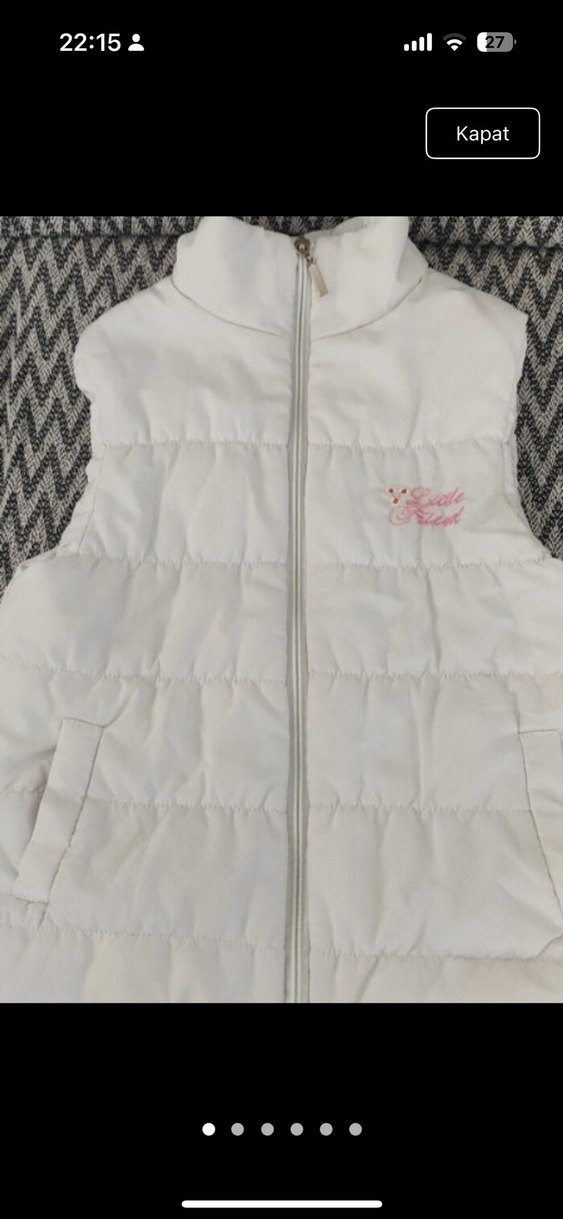 Nakışlı detaylara sahip, fermuarlı ve yüksek yakalı beyaz yelek. Yumuşak ve sıcak dokulu kumaştan, rahat sokak stili için uygun.