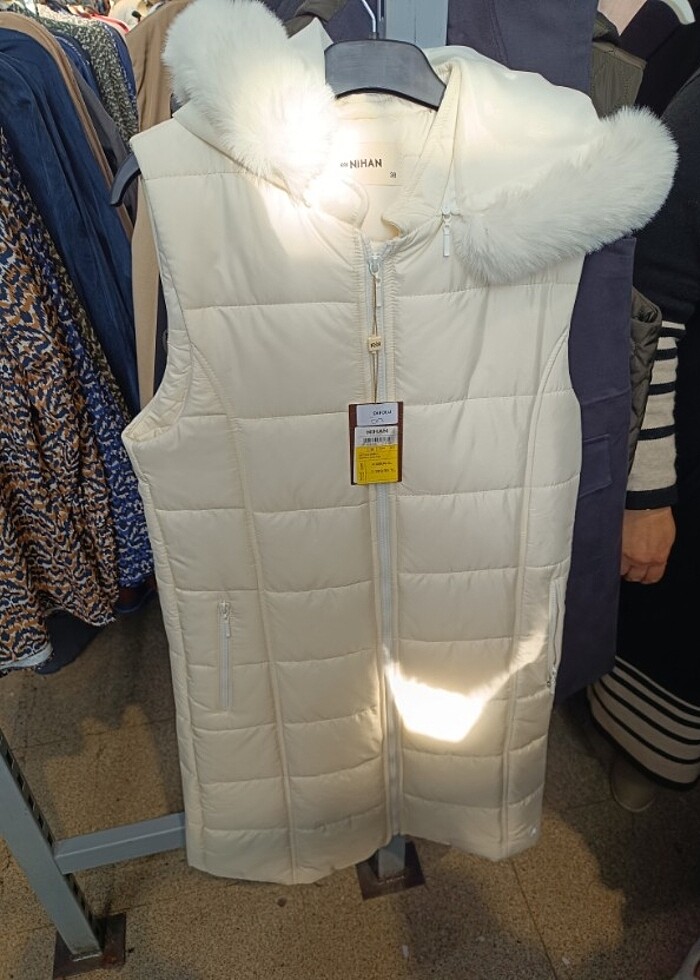 Tuğba Ven Marka yelek 48 beden 44 ve 46 ya da olur kapşonu çıkarılabilir.ilk fotoğrafa defolu olan yenisinin indirimli 2300 TL olan fotoğrafını da koydum bu yüzden extra indirim teklif etmezseniz sevinirim
