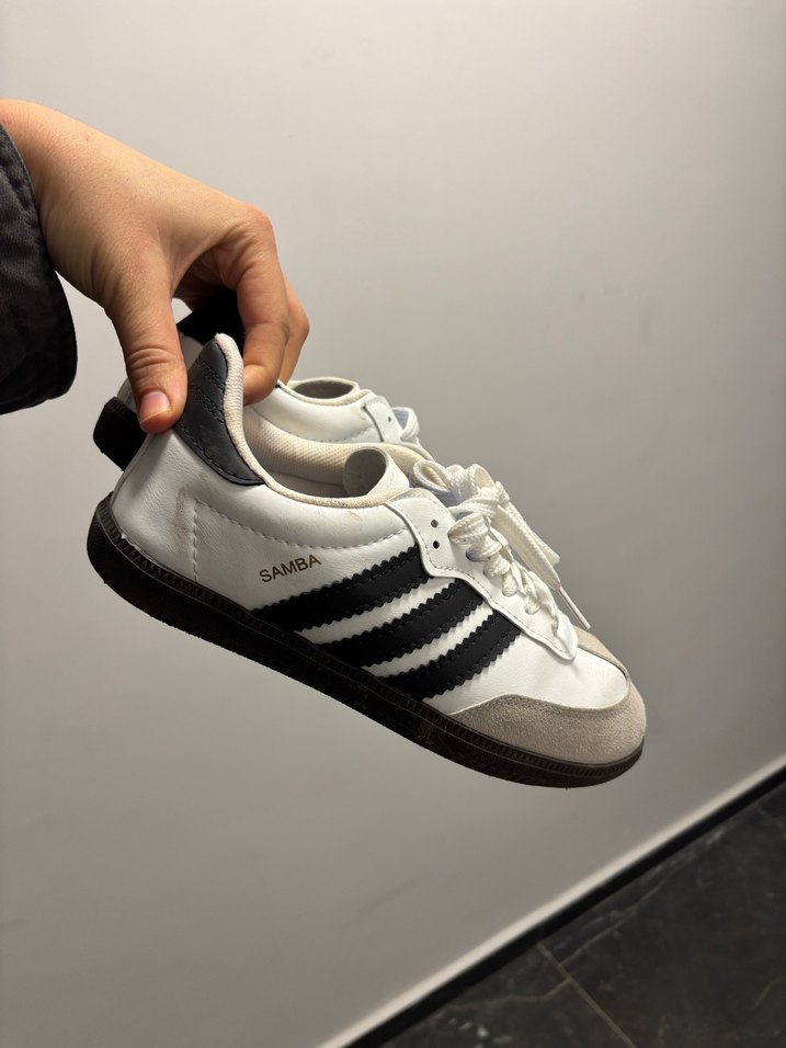 Beyaz ve siyah renkli Adidas Samba spor ayakkabılar, yumuşak kauçuk tabanlı, sportif ve rahat kullanım için uygundur. ♀️ sadece 1 kere giydim, büyük kalıp diye düsünüp almıştım ama tam kalıp çıktı. ayağıma olmadığı için satılık. orijinal değil.