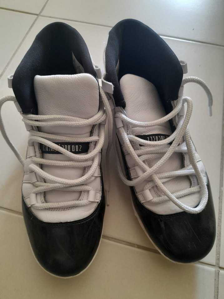 Beyaz ve siyah bağcıklı basketbol ayakkabısı, kauçuk tabanlı, sportif ve gündelik sokak stili için uygun. Rahat ve şık kullanım sağlar.