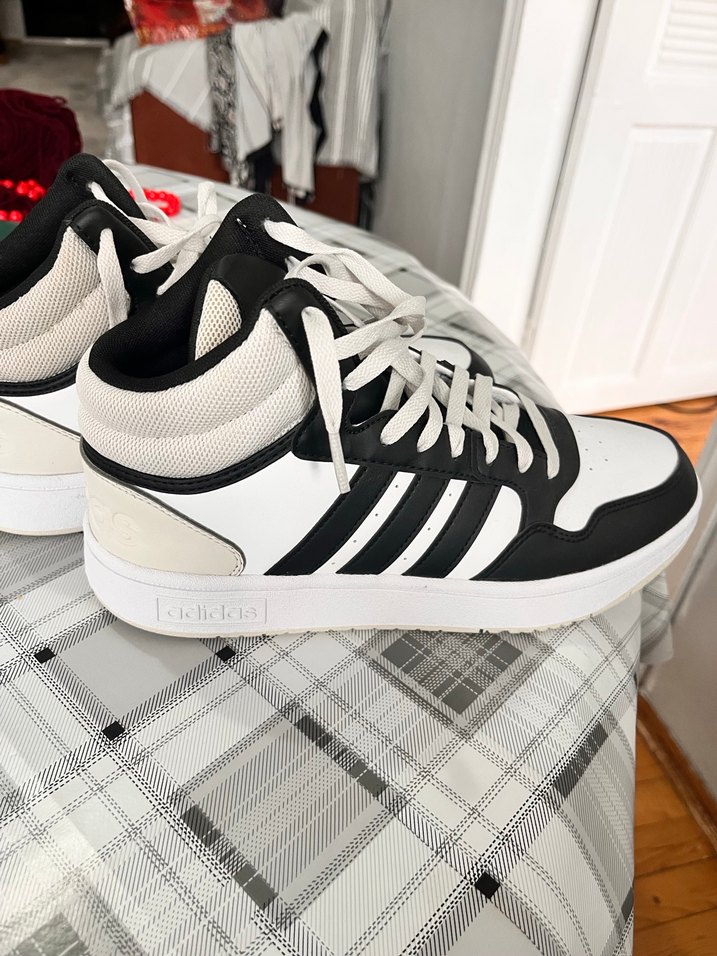 Beyaz siyah renklerde, bağcıklı, stiletto topuklu kadın spor ayakkabısı. Kauçuk tabanlı, sportif ve günlük kullanıma uygun.almanyadan hediye geldi büyük geldiği in satıp baska alıcam hiç giyilmedi kokusu üzerinde