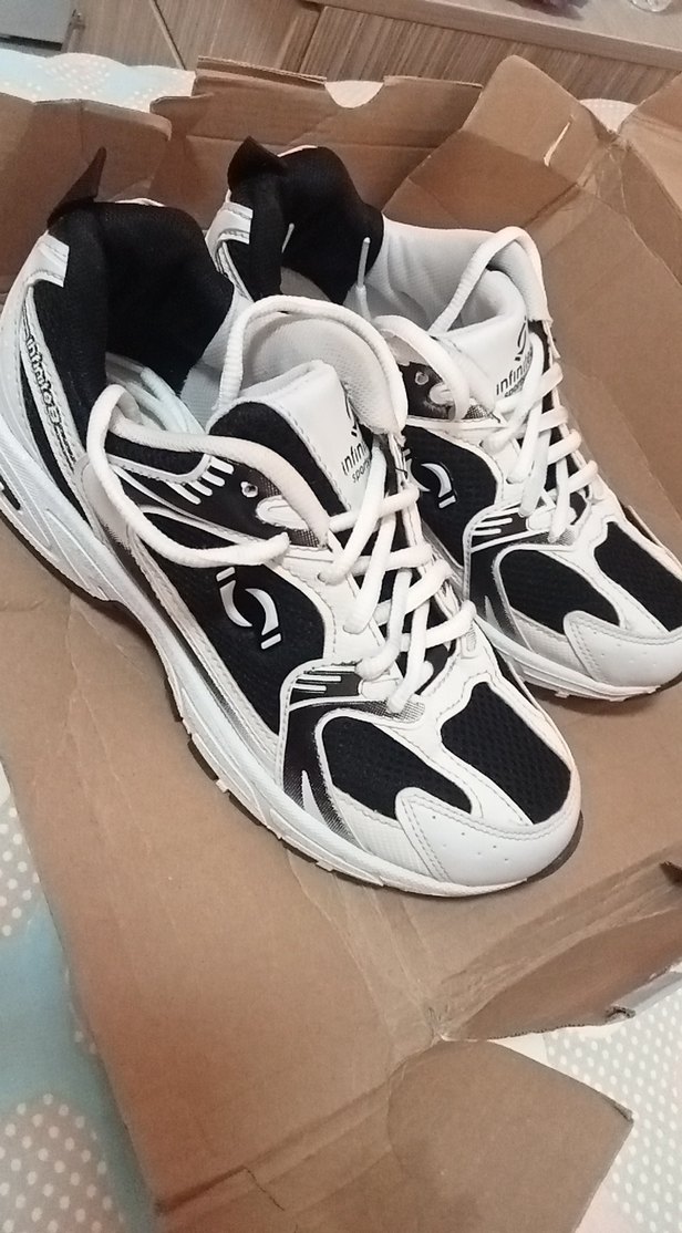 Bağcıklı beyaz siyah kadın spor ayakkabısı, kauçuk tabanlı ve sokak stiliyle sportif görünüme uygun. Sadece beş gün kullandım. Kaba durur diye bir beden küçük aldım ama ağımı sıktı, genişler sandım. (Zaten kaba durmuyor.) Yeni ayakkabı almak zorunda kaldım. Öğrenciyim ve bu ayakkabıyı da satmak istiyorum. Yepyeni duruyor. Çok rahat.