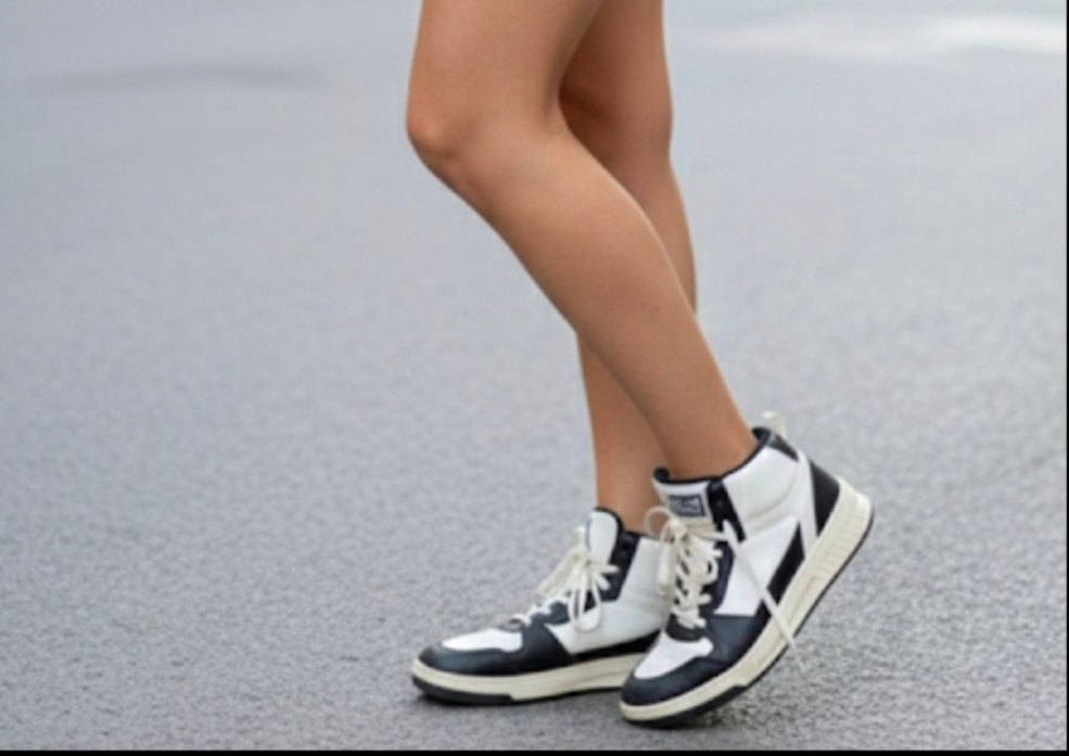 Beyaz ve siyah renkte, bağcıklı ve lastik tabanlı stiletto topuklu spor ayakkabıdır. Desensiz tasarımıyla trend sokak tarzına uygundur.