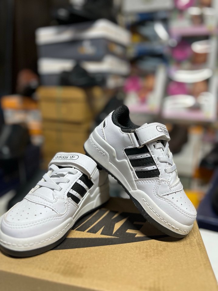 erkek ve kız çocukları için beyaz ve siyah bantlı, cırt cırtlı spor ayakkabılar. Adidas markasının muadil ürünüdür. 25-26-27-28-29-30 numaraları mevcuttur almak istediğiniz numarayı belirtiniz