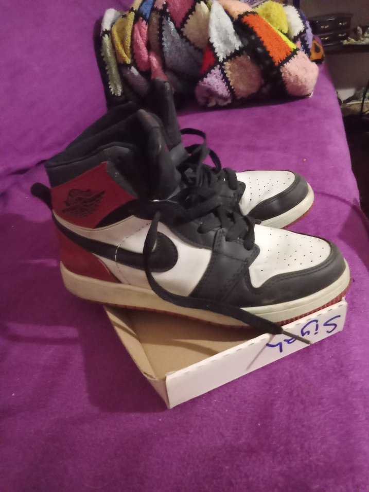 Bu basketbol ayakkabıları, kauçuk tabanlı, beyaz ve siyah baskılı tasarıma ve Velcro detayına sahiptir.
