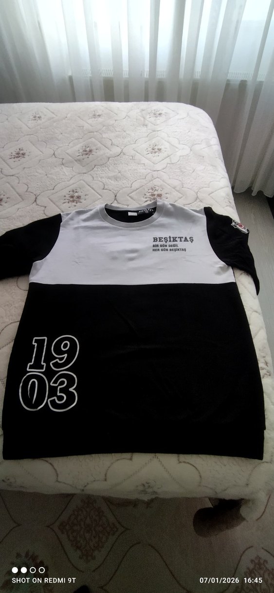 BJK orijinal beyaz siyah renklerde, baskılı desenli, bisiklet yaka ve uzun kollu erkek sweatshirt. Rahat kesimli ve kemerli detaylı, yumuşak kumaştan üretilmiştir.