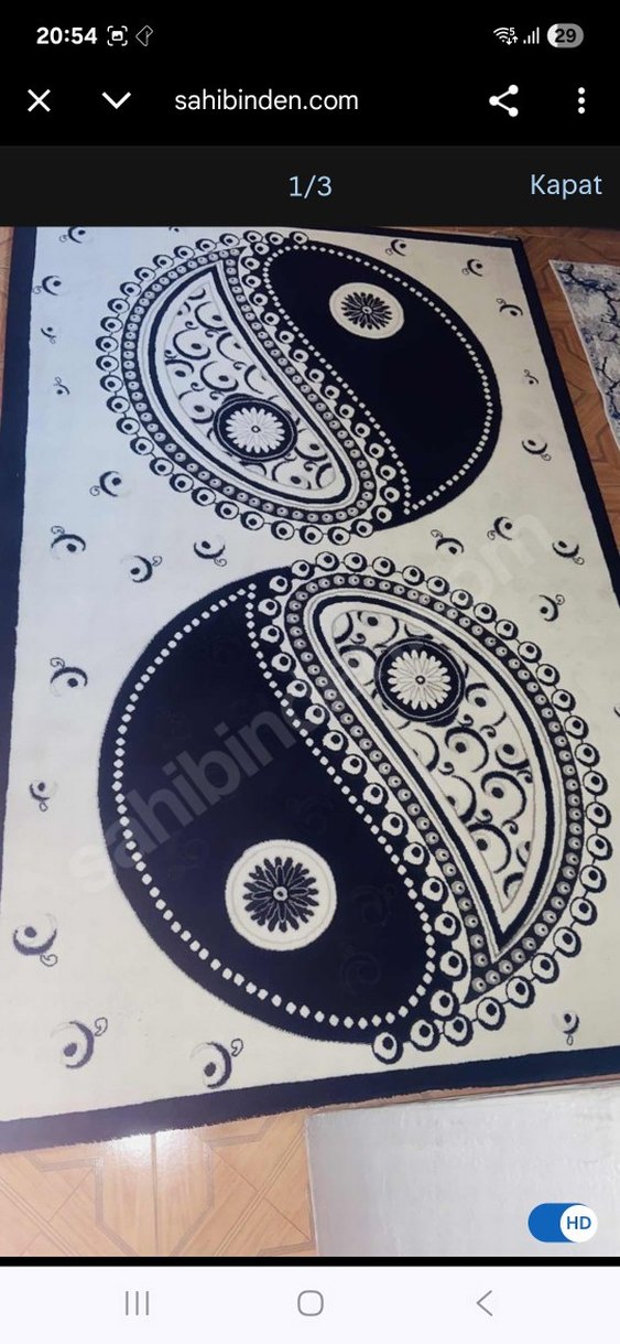 Beyaz Siyah Baskılı Geleneksel Halı