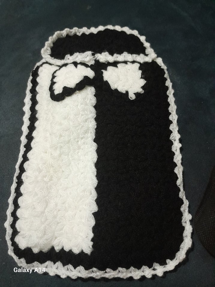 Bebekler için siyah ve beyaz renklerde, yumuşak dokulu ve kullanışlı bir önlük.