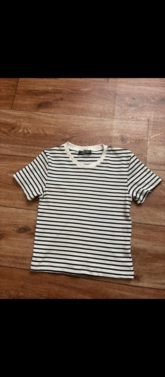 Beyaz Siyah Çizgili Kısa Kollu Tişört