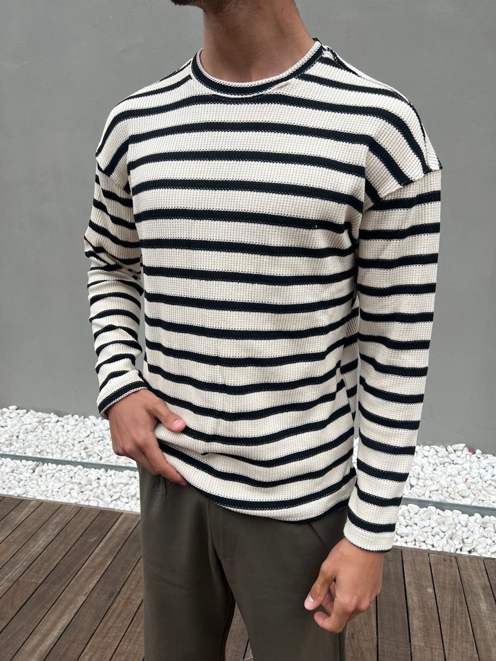 Waffle siyah-beyaz çizgili triko kazak. Kuitz Collection özel kampanya. Salaş ve modern görünüm sağlar. Basic bisiklet yaka basic kalıp. S-M-L-XL Bedenleri mevcuttur almadan ilan açtırınız fiyat teklifi kabul edilmemektedir fiyatımız kampanyalı fiyatdır.
