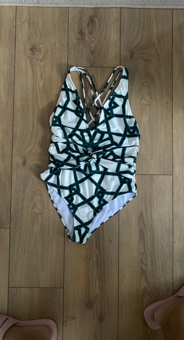 Beyaz Siyah Desenli Bağcıklı Kadın Mayo