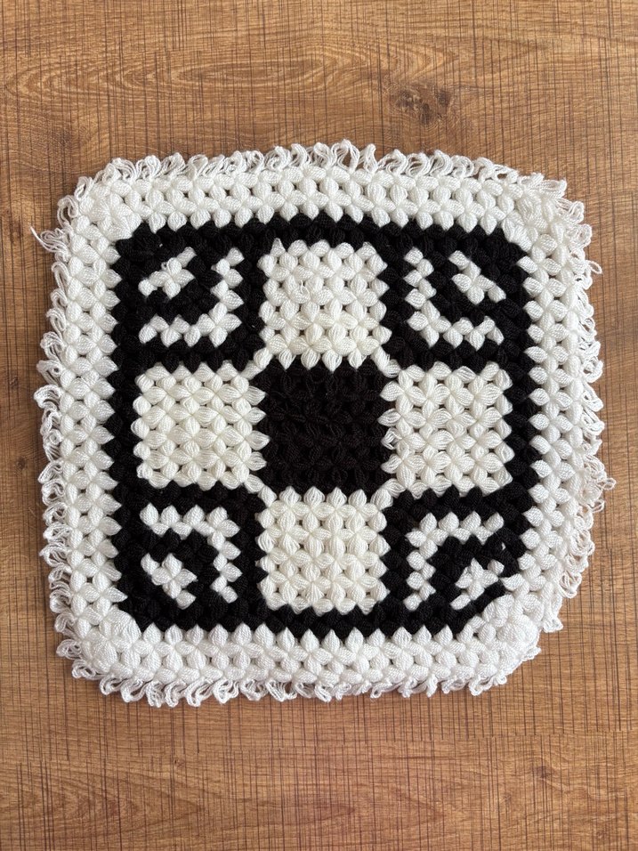 Beyaz ve siyah renklerde dokuma desenli, dokulu yüzeye sahip banyo süngeri.