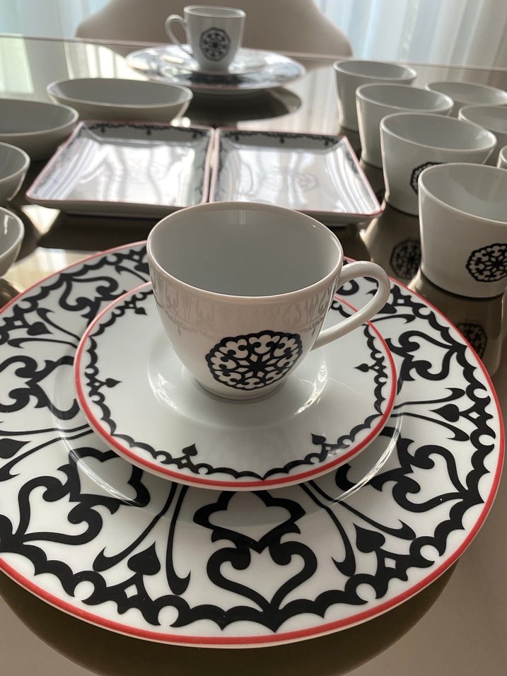 Beyaz Siyah Desenli Porselen Fincan Takımı