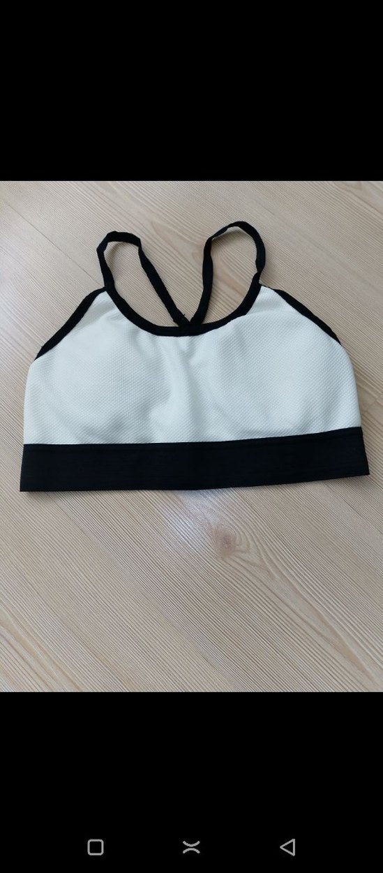 Beyaz ve siyah detaylı, athleisure ve streetwear tarzına uygun spor sütyeni. Rahat oturur ve midi uzunluktadır. ️♀️38. 40. beden arası kullanıma uygun likralı az kullanılmış defosuz yenidir. Göğüs pedleri mevcuttur. marka temsilidir