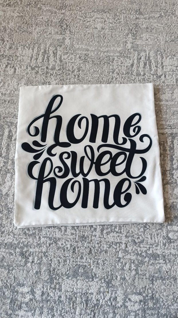 Beyaz renkli kırlent kılıfı, siyah renkte 'home sweet home' baskısıyla modern bir dekoratif dokunuş sağlar. 2 adet