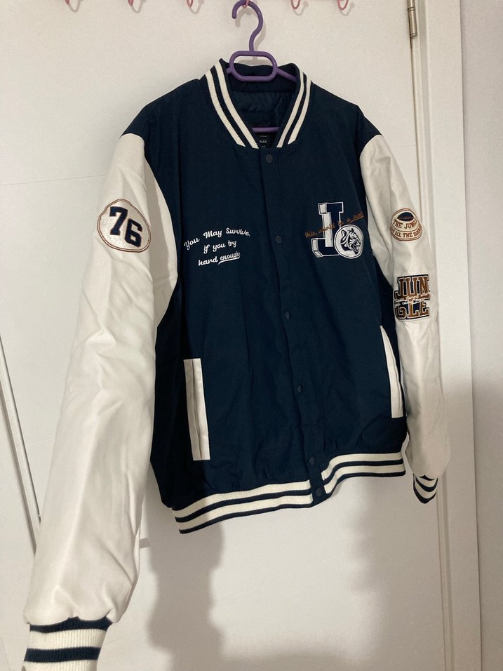 Erkek street wear ceketi, uzun kollu, düğmeli ve bol kesimdir. Beyaz kolları ve baskılı detaylarıyla, yumuşak ve sıcak kumaştan üretilmiştir. Günlük kullanıma uygundur.