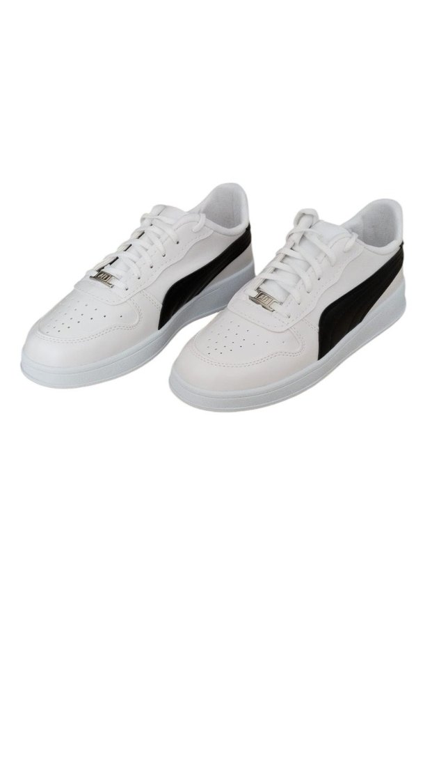 Beyaz ve siyah renkli erkek spor ayakkabıları, lastik tabanlı ve bağcıklı tasarıma sahiptir. Athleisure ve sokak stiline uygun, sade ve şık görünümlüdür. 40-41-42-43-44 numaralar vardır