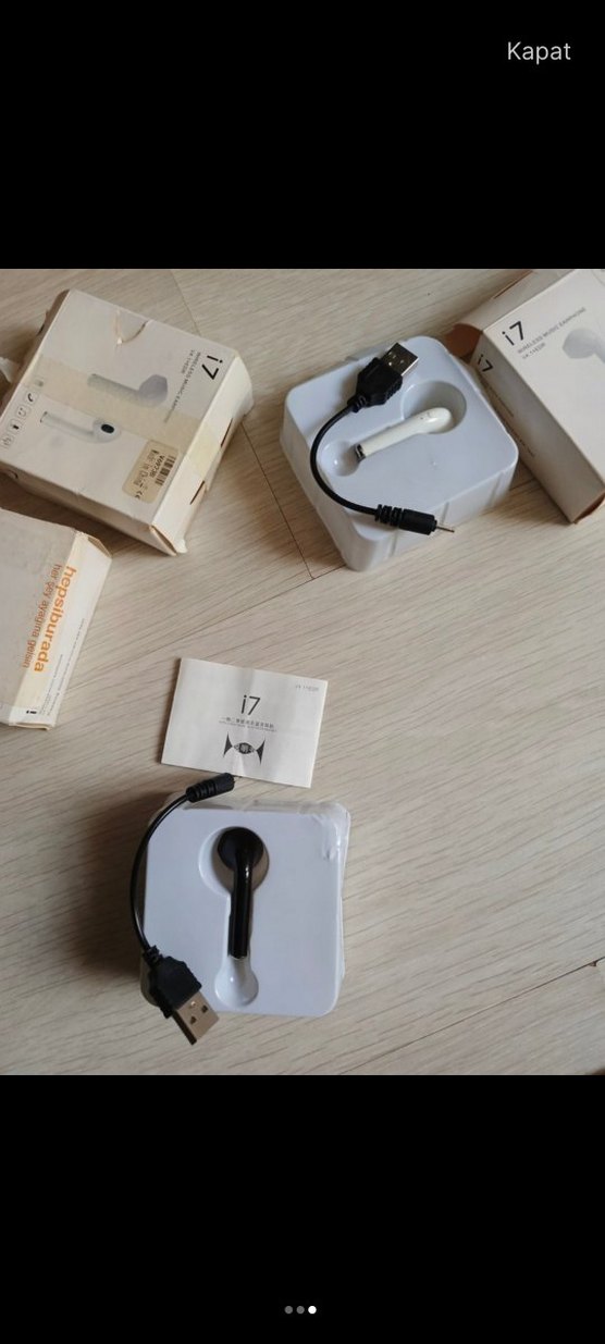Beyaz yada siyah i7 kulaklıklar, USB şarj kabloları, orijinal kutu ve kullanım kılavuzu ile. Hafif renk ve kompakt tasarım. Android ve ios çalışır