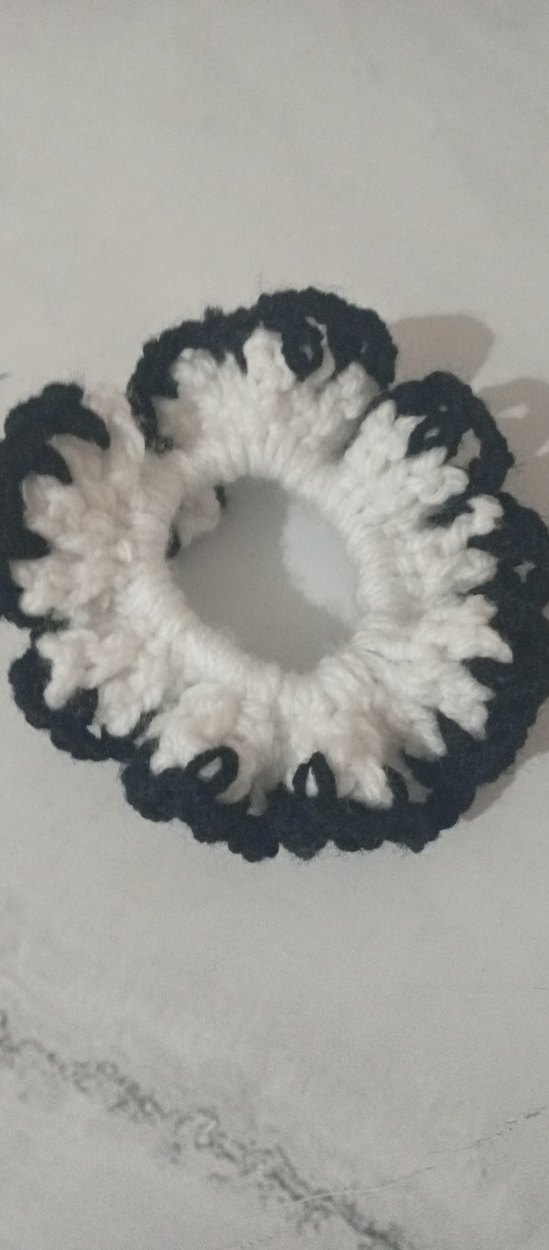 Beyaz Siyah Kenarlı Triko Fırfırlı Toka