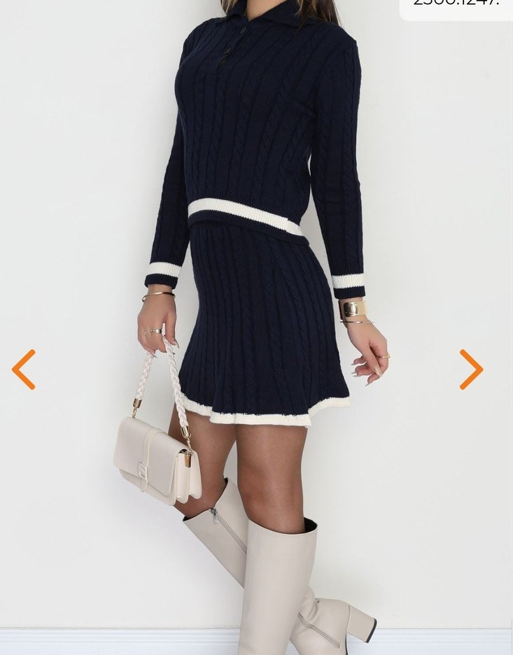 Beyaz renkli, kısa ve fitted kesimli bu triko takım çok şık görünüme sahiptir. Günlük kullanım veya ofis kullanımına uygunduriçin uygundur. standart bedendir