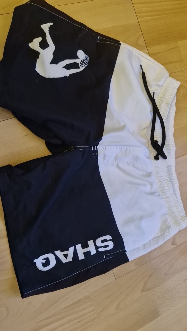 Beyaz ve siyah renklerde, baskılı desenli ve fermuarlı cep detaylı, bol kesim mini spor şort. ✨içinde file bölümü yok