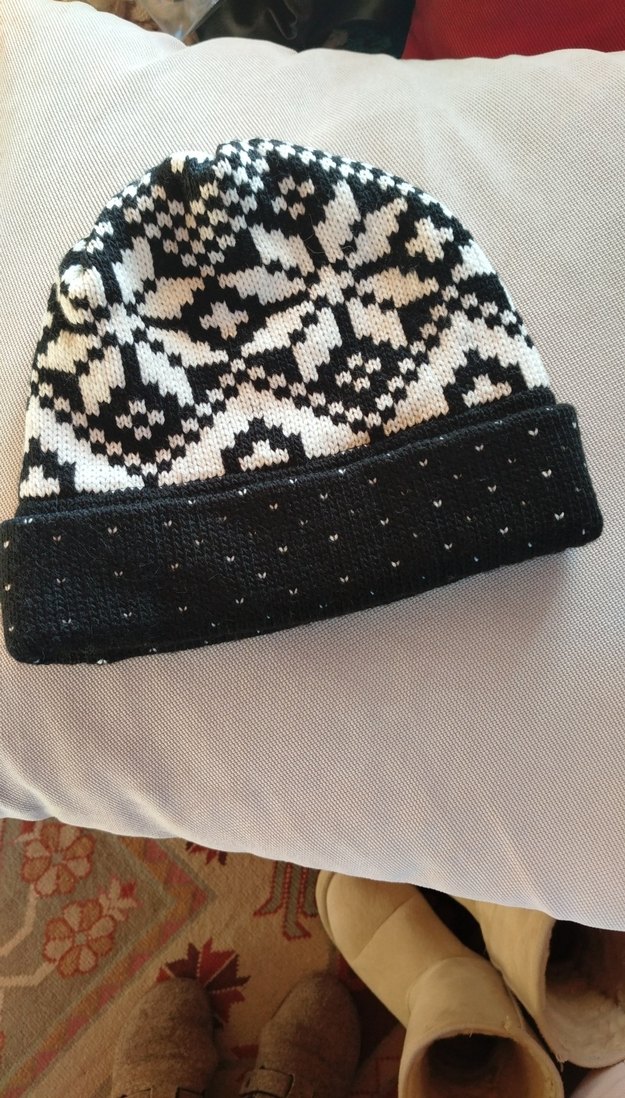 Kadın bere, koyu ve beyaz renklerde örgü desene sahip, rahat ve klasik bir tarz sunar. Sıcak tutar. ❄️