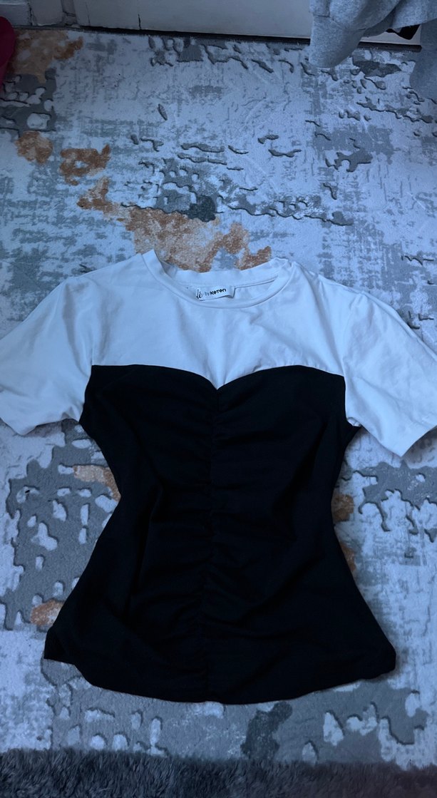 1 kere giydim arkasına çam sakızı bulaştı temizleyebildiğim kadar temizledim bir tık yırtığı var ama üstüne gömlek veya ceketle giyilebiliyor ön detayı harika.