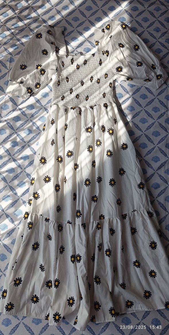 Beyaz siyah papatyalı midi elbise