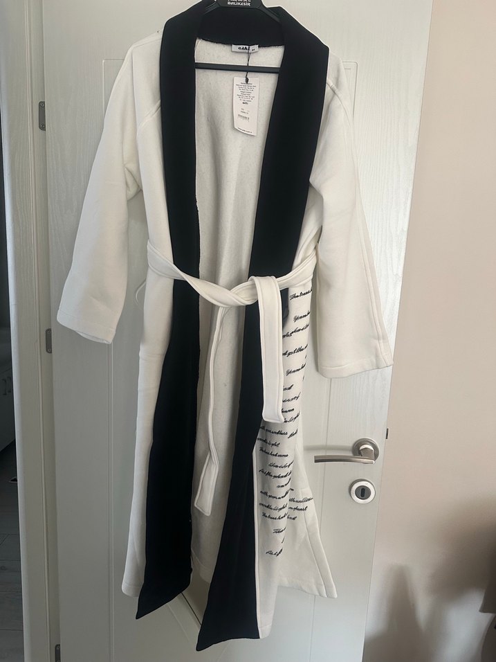 Beyaz Siyah Şal Yaka Uzun Kadın hırka