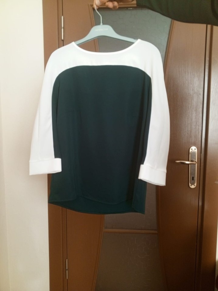 Kadınlar için beyaz ve siyah renklerde, yuvarlak yaka ve uzun kollu, bol kesim bluz. Günlük kullanım için yumuşak sentetik kumaştan, minimalist ve çağdaş tarzda.