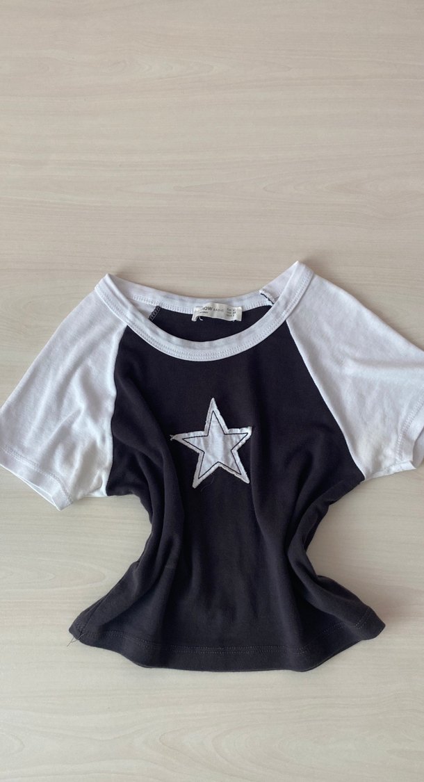 Pamuklu, kısa kollu ve yuvarlak yakalı kadın tişörtü. Siyah ön yüzünde beyaz yıldız baskısı, beyaz kollarıyla rahat ve gündelik kullanım için uygun. ⭐