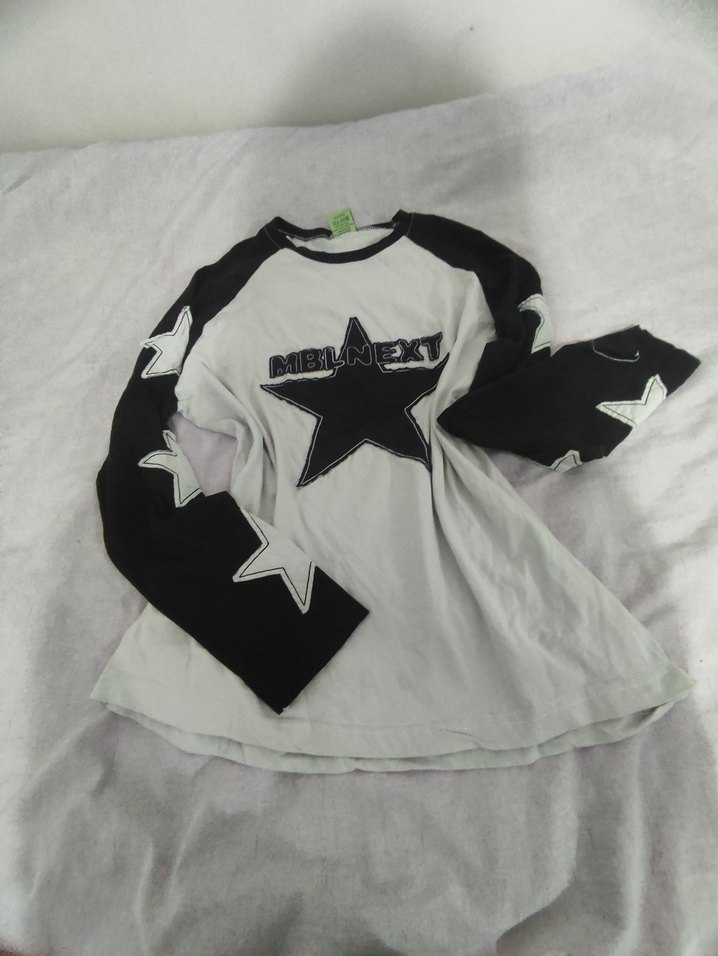 Yumuşak ve sıcak kumaştan, uzun kollu, baskılı yıldız desenli, dar kesim kız tişörtü. Yuvarlak yaka ve rock punk tarzında. ⭐