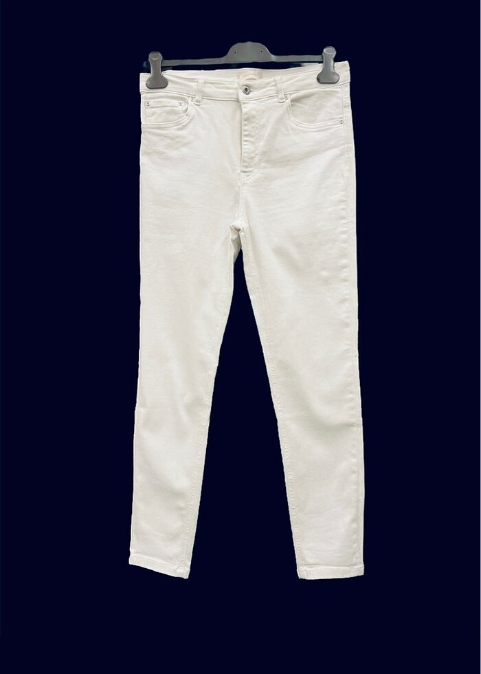 Skinny Fit kalıp beyaz Denim pantolon yüksek licralı. Bel 40, basen 46, boy 99cm. Çok az tamam kullanılmış çok iyi durumda
