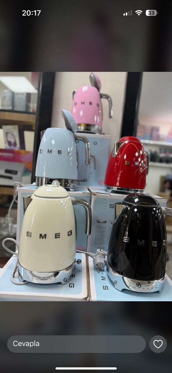 Beyaz SMEG su ısıtıcısı, krom sap ve taban ile pürüzsüz, kıvrımlı tasarıma sahiptir. Retro tarzı ve modern işlevselliği birleştirir. ⚡