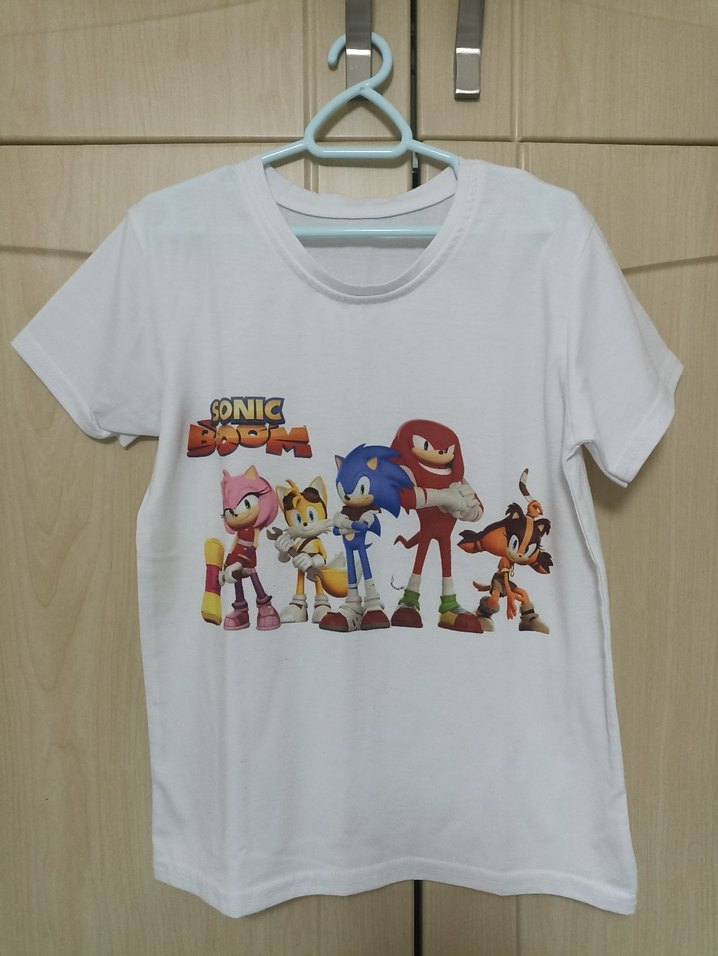 Pamuk kumaştan, kısa kollu ve bisiklet yakalı, Sonic Boom baskılı renkli baskılı erkek tişörtü.5-6 yaş içindir.
