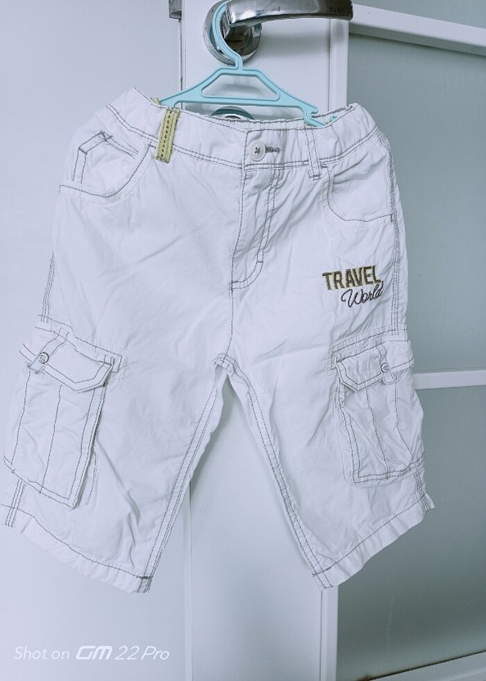 Renk Tam beyaz değildir. Hiç giymedi oğlum.ince yazlık kapri şort,