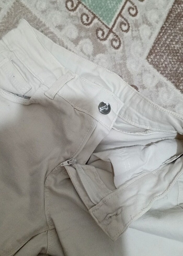 Düşük belli olduğu için uzun süre giymedim zaten çok kısa bir şort değil yalnız bayağı dar zaten son fotoğrafta yazıyor yırtı söküğü renk atıklığı falan hiç yok Sadece gördüğünüz gibi düğmenin Demir i soyulmuş Onun dışında yıkarsanız tertemiz olur