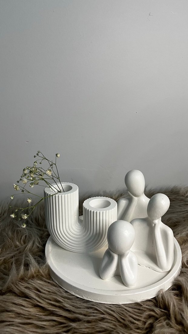 Beyaz soyut figür ve vazo seti