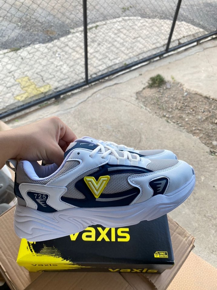Beyaz spor ayakkabısı, gri baskılı detaylar ve Velcro kapama. Stiletto topuklu, sportif ve sokak stiline uygun Vaxis ürünü. ♀️