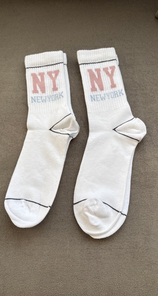 Beyaz pamuklu , 'NY' ve 'NEWYORK' baskılı, siyah dikiş detaylıdır. Rahat ve günlük kullanım için uygundur.