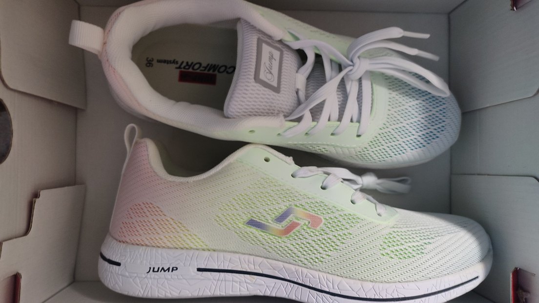 Nefes alabilen kauçuk malzemeden, stiletto topuklu ve cırt cırt detaylı beyaz kadın spor ayakkabısı.