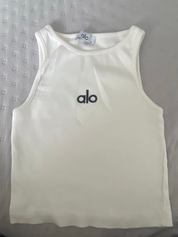 Pamuklu, beyaz renkli, kolsuz ve fitted kesimli bu kadın atlet, straplez yaka ve 'alo' baskısıyla spor ve günlük kullanıma uygundur. ♀️