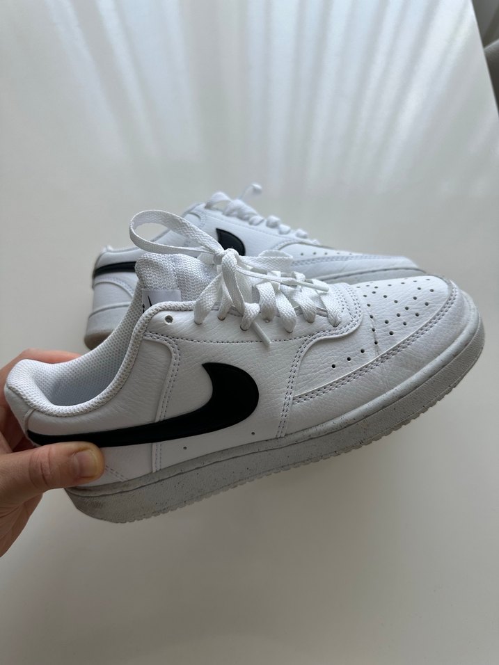 Beyaz blok topuklu, kauçuk tabanlı kadın spor ayakkabı. Siyah detaylarla trend sokak stili ve sportif casual görünüm sağlar. Orjinaldir 1 veya 2 kere kullanılmıştır
