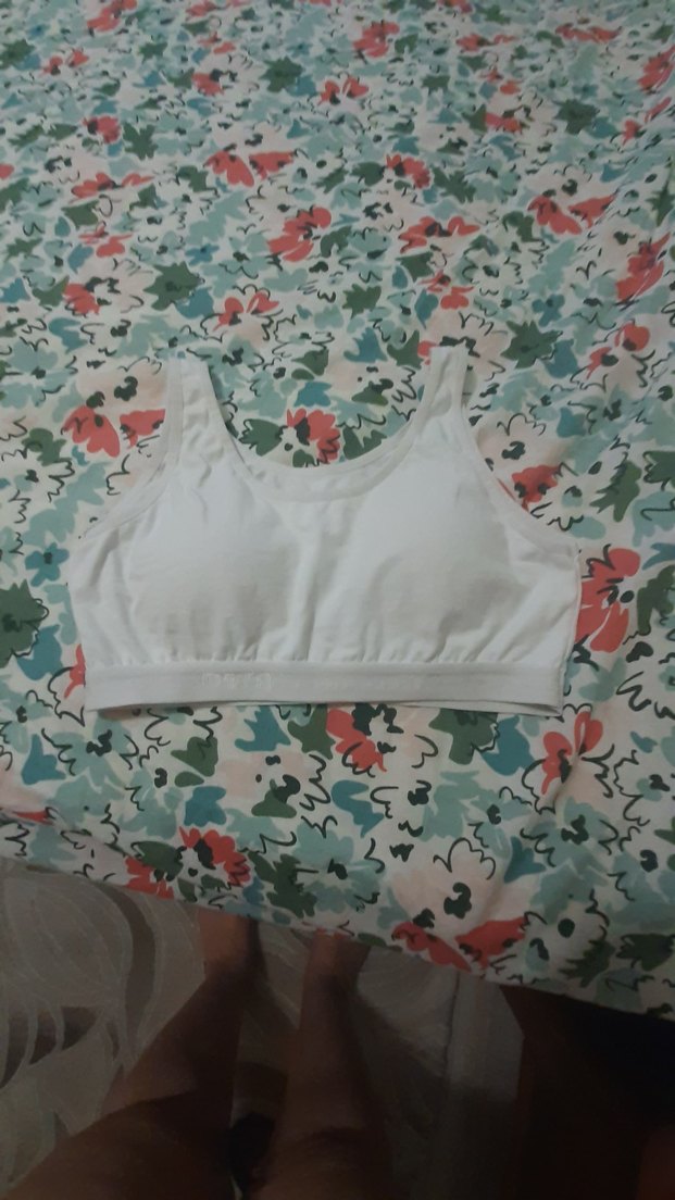 Beyaz, desen içermeyen, normal uzunlukta spor sütyeni. Yumuşak kumaştan, athleisure ve streetwear tarzına uygun. ♀️