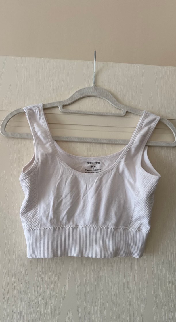 Beyaz renkli, normal uzunlukta midi boy, desen içermeyen spor sütyeni. Rahat ve nefes alabilen kumaştan üretilmiştir. ♀️