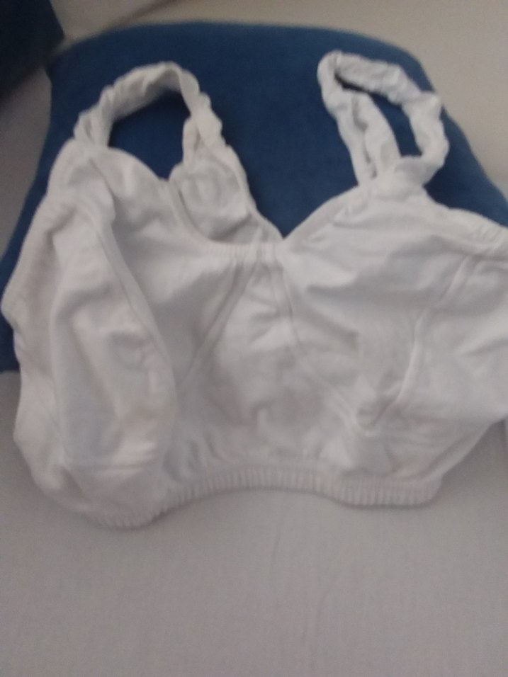 Beyaz, sade tasarımlı spor sütyeni, normal uzunluk ve dolgulu askılar ile rahat destek sağlar. Athleisure ve sokak stiline uygundur. ️♀️sütyen, penye sütyen, 115 beden, büyük beden, lastikli, sorunsuz, temiz yıkanmış olarak değerlendirin lütfen