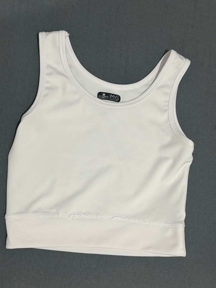 Yumuşak kumaştan yapılmış, sade ve kolsuz beyaz çocuk atlet. Rahatlık için ideal, katmanlama için uygun.