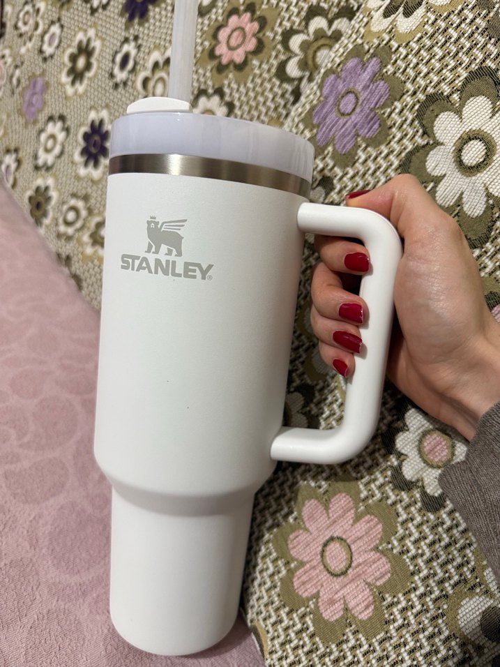 Beyaz renkli Stanley marka kupa, sağlam kulp ve kapak ile sıcak veya soğuk içeceklerinizi saklar. Kullanışlı ve şık tasarım. ☕ pipetlidir. Hiç kullanmadim, bana hediye olarak geldi, büyük oldugu için satiyorum.